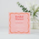 Dessa glada bröllopsinbjudningar har en retro vågig kant i nyanser av rosa och orange. Anpassa alla viktiga detaljer såsom brudens namn, datum för bröllopsfest, plats och gåvoregisterinformation.