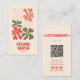 Retro Rosa Red Grönt QR Code Groovy Blommigt Boho Visitkort