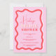 En coola fet namn inbjudningskort för möhippan med Retro rosa röd kurva vågigt foto från bröllop. All text, namn och färg i bakgrunden är anpassade för dig att blanda och matcha din bröllop-svit.