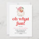 Vilken Roligt! Retro rosa jultomtens födelsedagsinbjudan.