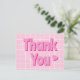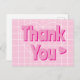 Säg Tack med det här beundransvärda rosa retro stil-vykortet. En coola återställer rosa stil med ett vitt rutnät mönster över överkanten. I mitten finns Tacken ord i rosa med en shock rosa skugga för att få den att framträda. Ett sött rosa kärlek hjärta är till högerna av ord du.