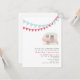 En inbjudan till repetitionsmiddag i bröllop med en illustration av en släpvagn med rosa vintage med en fönsterlåda med färgstarka blommor. Röd och blå buntning överst. Anpassa texten.