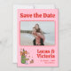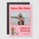 Retro Rosa Whimsical Photo Bröllop spara datum Magnetisk Inbjudningskort