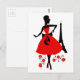 Retro-rött svart silhuett med Eiffel Torn Vykort