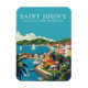 Bläddra upp de karibiska viberna med den här retro-stil-reseillustrationsmagnet för Saint John's, Antigua och Barbuda. Denna klassiska Väster Indies souvenir fångar öhuvudstadens färgstarka charm. Perfekt för älskare i Västindien och samlare av reseminnesmärken för länder i Västindien.
