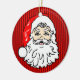 Retro Santa image on red stripey Christmas ornament.