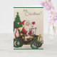Vintage/Retro-julhälsningskort. Det är bra Jultomten som levererar julklappar i modell T. Det är jul!