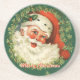 Retro Santa Sandstone Underlägg en söt till ditt hems helgdag. Gör också en underbar gåva! Reflexdesignen har tomtens leende ansikte omgiven av en krans som sätts på en mörk grönt bakgrund. Texten lyder: "God jul". Anpassa texten efter behov.