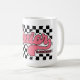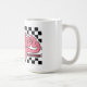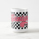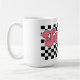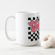 Den här dynamiska och visuellt slående designen har ord "Senior" på en framträdande plats i ett stort, fetstilt och kursivt rosa med en vit kontur. Bakgrunden består av ett svart och vitt schackat mönster, som lägger till en retro- och öga-fångstkontrast. I det nedre hörnet av högerna skrivs texten "CLASS OF 2025" i ett fet, versalteckensnitt med en rosa fyllning och svart kontur. Den lekfulla typografin i stil i kombination med det kontrasterande färg och det djärva designade inslag gör detta till en perfekt och ett minnesvärt val för att hedra högklasserna i mugg.
