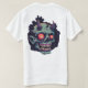 En högkontrastig, stiliserad illustration av en hornprydd, skalliknande varelse. Designen har en svaltonad teal- och lila-färgskala med lysande röda ögon. Virvlande mörk rök omger huvudet, som är detaljerat med spruckna horn och vassa tänder. Konsten använder sig av djärva linjer och livfulla höjdpunkter, som påminner om modern dekalkonst, vintage-serietidningar eller urban streetwear-grafik.