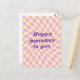Grattis till dig Retro sextio sjutti hippi-design födelsedags kort. Pastell rutig design för alla retro sjuttios nostalgiker och älskare. Klassiska men moderna skeva virade rutor i ljust rosa pastell och gul färg. Det här är en riktigt cool retro-rutig design i pastellfärger, full av bra vibbar. Denna fina retro-psychedeliska design tar dig till sagoland. Du kan anpassa denna design med din monogram, namn, logotyp eller ett talesätt. Klicka på redigera design och redigera text.