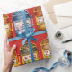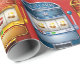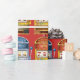 Färgfull reflektorplats maskiner mönster i stil på röd bakgrund.