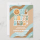 Fira din lilla en milstolpe med denna retroinspirerade inbjudan till 1-årsdag med feta vågiga ränder, ett glatt leende ansikte och lekfull typografi. Perfekt för ett groovy partytema, detta anpassningsbara kort sätter tonen för fred, kärlek och kul. Gästerna kommer att älska den livfulla designen och lättlästa detaljerna, vilket gör det idealiskt för födelsedagar i Miami eller var som helst du vill ha en nostalgisk stämning. Anpassa enkelt för att skapa en unik souvenir som lyser med retro charm.