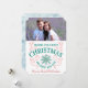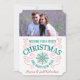 Ditt eget foto tar det översta mittsteget på det här platta Helgdag stil i söt. Texten är i grått och mjukt rött, med en snöflingbild i mitten. Din namnteckning är vid grund. Kortets baksida är en söt teal och vit bokeh och snöflake abstrakt mönster. Enkel och modern, men med en aning nostalgi för julens förflutna.