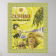 Vintage-/återflygplansaffisch belyser det bästa i Sydkalifornien från Hollywood till stränder, sol och handflatan träd. Vintagen marockanska gräns lades till i accent färg.