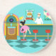 upp något speciellt med den här Underlägg av Retro Soda Fontän Sandstone. Den minimalistiska konsten, tecknad teckning-designen, har insida på stadens kallaste plats. Det är 1950:s soda fontän, i all sin kitschy gloria! Mot bakgrund av en vattenvägg kan vi se poster reklam för husets specialiteter. En poster visar en hamburgare och flaska of pop för en pris på 15 cent. Den andra poster två skopor glass i en sockerkon för endast 5 cent. Med priser som dessa måste det vara svårt att se hur man väntar! En mycket kompetent soda idiot bemannar tealräknaren med gultens accenter. Den unge mannen med den starka arbetsmetiken håller en glasskon med ett enda skåp av lemonglass i gulten - även om det, för att vara rättvis, kan vara ananas! Den rena lasten bär en pristine, vit skjorta med svart, bukslips och vit hatt med röda accenter. På motsatt sida av räknaren ser vi tre röda och krom pub-avlagringar. En blond tonyboppare, vars mun säkerligen vattnar. Det är oklart om hennes mun vattnar över den glasskon som är på väg till henne eller den flitiga unge man som serverar den. Hon bär en rosa pudel-kjol och ett formulär som passar svart ovansida. Hennes gult lås dras tillbaka i en klassisk ponytail. Bredvid denna kundkrets finns det en färgstark, klassisk jukebox som har brun, träkornig, paneler och färglöst ljus. Det är bättre än så, det är säkert att det kommer att finnas med alla de underbarare rock and roll-högtiderna! Golv i detta århundrade är modern glass parlor ett akvarium och teal, schackbräde mönster som bara skriker för att någon ska pröva alla de senaste dansrörelserna.