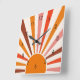 Retro Sol Rays Burst Sunset Orange Gult Red Fyrkantig Klocka