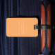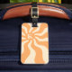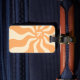 Bagagetaggen med en retro, blek orange sol med strålande strålar och din monogramsstart.