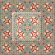 Vacker contemporary, ljusröd, pastellfärgad orange och skalcellsturka av grönt färgad Bohemian kaleidoscope mosaic mönster. Utformning av finare konstnärliga designer, konstnärer från mode, populär höftledsapparat, vintage, nouveau deco art stil eller abstraktens geometriska motiv elegant.