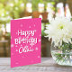 Det här hälsningskortet för roligtens födelsedag har en skarp rosa med stjärnor och återinspirerad typografi. Baksidan har samma ljusa rosa färg och stjärna mönster. Det ser ut som roligt, feminin och lycklig - se insamlingen för att samordna saker!