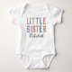 Fira systerskapets glädje med vår söta babybodysuit med den förtjusande frasen "Lilla syster" som är personliggjord med ett anpassat namn. Den hjärtvärmande designen kompletteras av charmiga retro-pastellfärgade typsnitt i mitten, vilket skapar en förtjusande och stilren helhet för syskon. Tillverkad med mjukhet och komfort i åtanke är denna matchande systerklänning perfekt för att fånga dyrbara ögonblick och främja en stark systerlig band. Låt dina små tocka runt i stil med denna söta och personliga bodysuit, ett perfekt tillskott till deras garderob som vackert uttrycker kärleken mellan systrar.