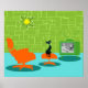 Det sägs att hundar har ägare och katter har personal. Kattdjuret på denna Poster för Retro Space Age Kattunge kunde inte godkänna mer! 1960-talets minimalistiska konsthantverk i stil har en slank, svart katt i ett modernt vardagsrum i mitten av århundradet. Det sofistikerade rummet har en grönt, en stenvägg. Maten är akvarium med tårskuggor. Rummets inredning omfattar en gult, sputnik light figur, en orange-barnstol med matchande fotstol och en grönt-TV med kanin öron. Den lyckliga svarta katten syns på fotbollen framför tv:n. Dess favoritshow är på! På TV-skärm kan vi se en svart och vit klassisk TV-familj lösa livets problem på en halvtimmes show. Denna utformning är korrekt, om vi säger det själva.