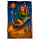 Make every gift an interstellar event with this retro sci-fi pin-up gift bag! Featuring a classic 1950s-inspired space heroine riding a blazing rocket through a star-filled sky, this design captures the campy charm of vintage B-movie posters and atomic-age science fiction.