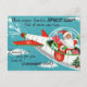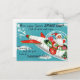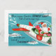 Detta skarpa vykort för jul har en vintage som illustrerar att Jultomten levererar presenter i sitt rymdskepp. Perfektens roligt-kort för fläkt av Santa och sak retro!