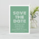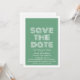 Retro Spara datum tillkännagivande i grönt och vitt med en funky modern typsnittsdesign. Denna trendiga och stilrena spara datum inbjudan är lätt att anpassa med dina bröllopsdetaljer. För fler anpassningsalternativ, klicka på knappen Anpassa den.