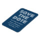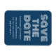 Retro Spara datum magneter i blått och vitt med funkyns moderna typografi. Det här trendiget och snyggten spara datum magneter är enkelt att anpassa med dina uppgifter om bröllop. Om du vill ha fler anpassningsalternativ klickar du på knappen Anpassa.
