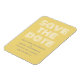 Retro Spara datum magneter i gult och vitt med funkyns moderna typografi. Det här trendiget och snyggten spara datum magneter är enkelt att anpassa med dina uppgifter om bröllop. Om du vill ha fler anpassningsalternativ klickar du på knappen Anpassa.
