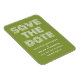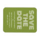 Retro Spara datum magneter i oliv grönt och vitt med funkyns moderna typografi. Det här trendiget och snyggten spara datum magneter är enkelt att anpassa med dina uppgifter om bröllop. Om du vill ha fler anpassningsalternativ klickar du på knappen Anpassa.