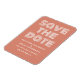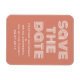 Retro Spara datum magneter i orange och vitt med funkyns moderna typografi. Det här trendiget och snyggten spara datum magneter är enkelt att anpassa med dina uppgifter om bröllop. Om du vill ha fler anpassningsalternativ klickar du på knappen Anpassa.