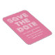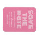 Retro Spara datum magneter i rosa och vitt med funkyns moderna typografi. Det här trendiget och snyggten spara datum magneter är enkelt att anpassa med dina uppgifter om bröllop. Om du vill ha fler anpassningsalternativ klickar du på knappen Anpassa.