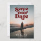 "spara vårt datum" i ej redigerbar grafik; valfri text på baksidan; anpassa ytterligare för att välja ditt eget färg och ändra typsnitt på grund fram- och baksidan.