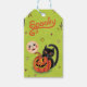 Retro Spooky Kitten Pumpkin Måne på Lime Green Presentetikett