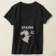This design features a soft, dreamy white bunny holding a vibrant pink tulip, perfectly capturing the essence of a fresh spring morning. The bold, green "SPRING" typography is accented with playful bunny ear details, making it a standout piece for any casual wardrobe. Set against a deep black background, the high-contrast colors create a premium, artistic look that is both modern and nostalgic.