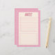 A cute and useful pink and white hand drawn grid bordered stationery checklist paper with a blank space for your notes at the bottom.