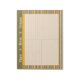 A modern stationery notepad, featuring several types of space to organize your thoughts- dot grid, lined and blank spaces bordered by a bright, hand drawn lilac, yellow, green, and cream striped pattern and a header proclaiming "Plans Notes Dreams" in a groovy retro font, with a blank space under the header for your title and date.
