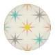 Ignite nostalgic vibes with this playful retro starburst pattern that channels pure mid-century modern magic. Bold atomic stars in varying sizes burst with energy in vibrant teal, sunny yellow, coral orange, cool gray, and soft lime, featuring subtle gradient centers for added depth and movement on a clean off-white background. The iconic 1950s-60s design brings joyful, cosmic flair and timeless optimism.