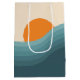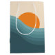 Abstrakt färglös illustration av sjölandskapet stil med blå havsyta i vågar och sol i solnedgången för alla som tycker om naturen och väntar på sommaren i äventyr.