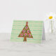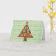 Min ursprungliga konst finns med på detta fina julkort, bestående av en grafiskt utformad julgran i en retro stil med gröna och rosa nyanser, placerad på en bakgrund med ett vintage-randigt mönster med en lätt sliten look, vilket gör ett fint och festligt kort. Inuti kortet står "Må din jul prydas med glädje och fyllas med kärlek. Ha en underbar jul och nyår!" som en enkel och hjärtlig juls hälsning till alla.