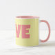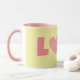 Min ursprungliga digitala konst i mugg har ett snävt mönster-hjärta i rosa, som fungerar som brev O i KÄRLEK i ord. Brev återkomst är designad i en kompletterande rosa färg till hjärtat och ge i detta en av en typ mugg och en artärfläkt på bakgrunden av en reflexfärgad gult. Insidan och handtaget på muggen är rosa, men du kan ändra färg om du vill. Det här är 11 uns mugg, bara den perfekt som är storlek för ditt bryggkaffe eller te - eller till och med hett choklad! Det skulle vara en underbar gåva till Valentindagen, och man kan lägga in paket med kaffe, tepåsar eller hett choklad i. En annan presentidé är att lägga en liten växt i den för att göra extra speciellt för din älskade.