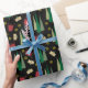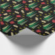 Den här presenten med pappra inslag är en julklapp mönster med ett reflekterande utseende från stil som består av Julgranar, gåvor och guld-snurrar i muterade gröntar, mörk röd och guld i svart bakgrund.