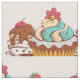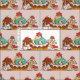 Patternerad väv med upprepade rader av utsökta tittar muffinsar med snurrar och körsbär och ryumfrost. Illustrerad i en klassisk retror stil. Färg omfattar grönt, rött, blått och kräm.