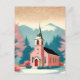 Här är en retro stil illustration av en rosa kyrka i ett rosa och blått landskap. De flesta av oss är inte så lyckliga att vi bor i gnistrande rosa landskap, men denna söta rosa kyrka ligger på precis rätt plats.