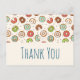 Tack-kort med ett sött mönster med munkar som ramlar runt omkring. Rosa, gröna, bruna och krämfärgade färger ger verkligen denna design en cool retro-känsla.