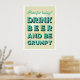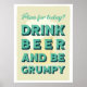 Lägg till lite humor i ditt utrymme med vår Plan för idag? Drick öl och var grinig vintage-affisch! Med fet, retro-font och ett underfundigt budskap är denna lekfulla väggkonst perfekt för öljärare och de som uppskattar en touch av sarkasm. Perfekt för herrum, hembarer eller som en unik present. Skål för att hålla det verkligt.