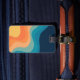Bilden Retro stil vinkara mönster med gult, orange, blått, marinblått och turkos rand dekoration