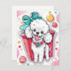 Det här vackra vita pudel är redo till jul, med ett sött rött halsband med en röd present i bakgrunden. Ett sött helgdag-kort, lämpligt för pudel älskare eller någon som finns med på din kortlista. Samarbetet mellan människa och människa skapades med hjälp av förstärkta designförbättringar via livmodern.